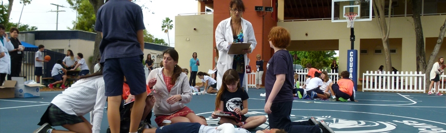 As part of this project, fifth grade students addressed the varying degrees of injuries dramatized by middle school students. Students were divided into groups based on their roles: first responders, recorders, communicators, and medical personnel. This exercise provided students with the opportunity to practice the importance of accuracy, teamwork, and communication in an urgent, medical situation. The City of Miami Police Disaster Command vehicle was also parked in front of the school at 10:30 a.m. for tours. We are grateful for Dr. Caralis’ commitment and to Cushman parents Dr. Motola, Dr. Marcus and Nurse Cousins who also helped with this cutting-edge educational opportunity that put S.T.E.A.M. in action at The Cushman School.