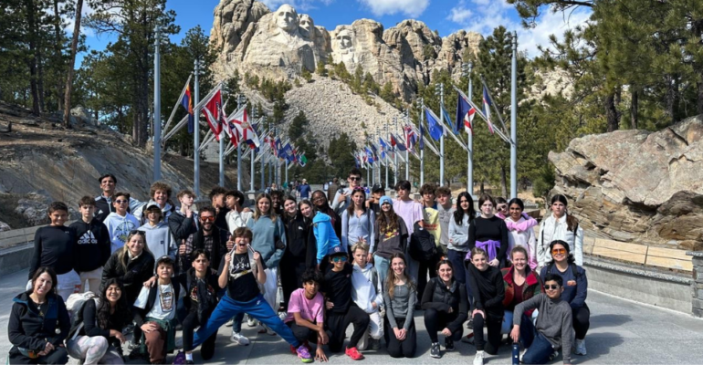 This past school year’s Artist-in-Residence Carlos Alves led our eighth-grade students in a week-long creative process that culminated with this spectacular mosaic located off the Middle School amphitheater and lunch area! This impressive work of collaboration represents our school spirit and unity, despite the many